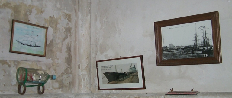 Quatre ex-voto : photographies, dessin d'un trois-mats, maquette dans une bouteille : vue généraleImmatriculation