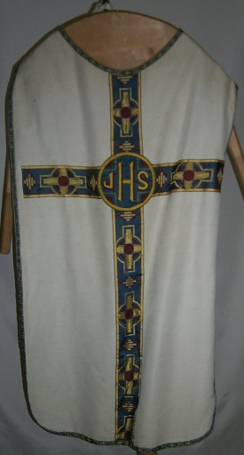 Ornement blanc 1 : chasuble, bourse de corporal, étole, voile de calice,