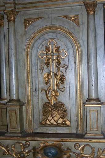Ensemble de l'autel secondaire sud : autel, 2 gradins d'autel, tabernacle, retable, degré d'autel,