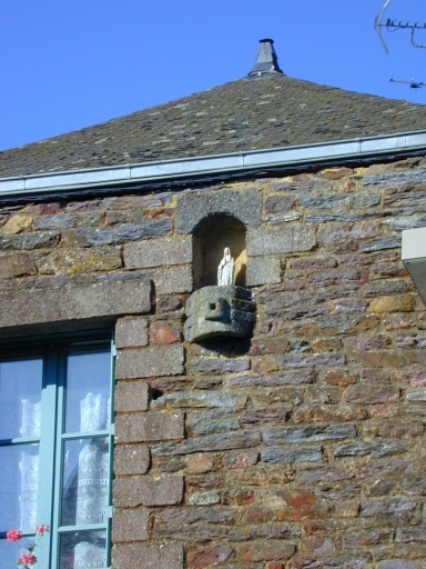 Façade sur rue, niche à statue avec une pierre de remploi : détailImmatriculation
