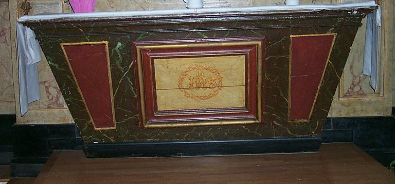 Ensemble de l'autel du Sacré Coeur : autel, tabernacle, retable, 2 gradins d'autel, 2 degrés d'autel,