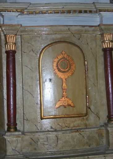 Ensemble de l'autel du Sacré Coeur : autel, tabernacle, retable, 2 gradins d'autel, 2 degrés d'autel,
