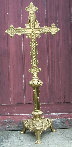 Garniture d'autel : croix d'autel, 4 chandeliers d'autel,