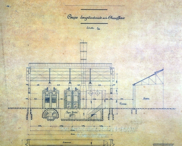 Chaufferie, coupe longitudinale (1918).Immatriculation