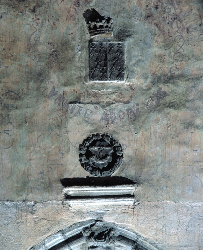 Choeur, partie supérieure du mur de chevet, détail des armoiriesImmatriculation
