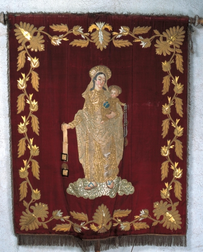 Bannière de procession : saint Melaine, Vierge à l'Enfant, dite Notre-Dame du Scapulaire (?),