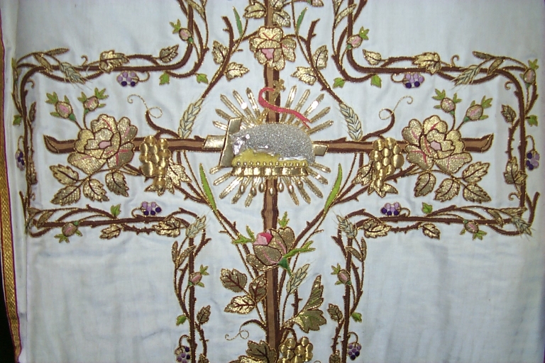 Ornement blanc 4 : chasuble, bourse de corporal, étole, voile de calice (Guipry fusionnée en Guipry-Messac en 2016),