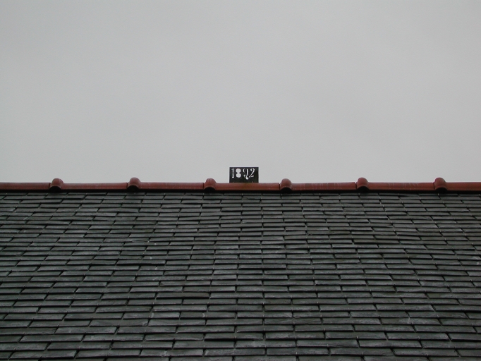 Détail ; ancienne partie agricole, date portée sur une ardoise faîtière en remploiImmatriculation