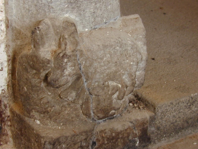 Détail : rez-de-chaussée, salle est, pierre sculptée en remploiImmatriculation