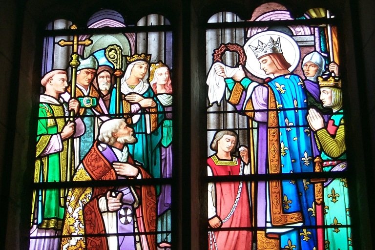 Verrière à personnages de la baie 11 : saint Louis rapporte la couronne d'épines,