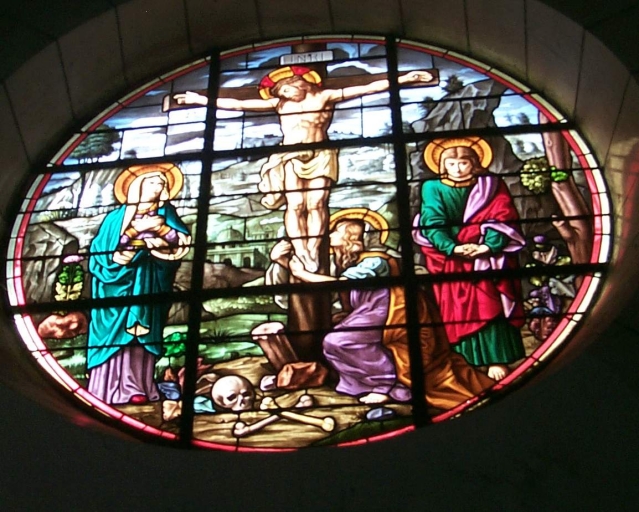 Ensemble des 2 verrières à personnages des baies 5 et 6 : Calvaire et Déposition,