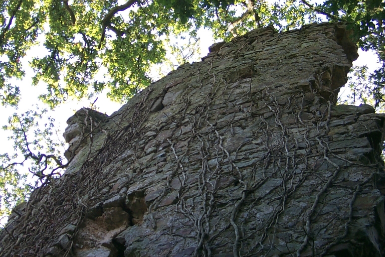 Le donjon en ruines, parement extérieur : vue partielle nord-ouestImmatriculation