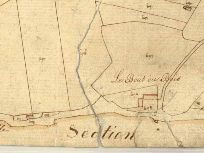 La ferme, partie ancienne, sur le cadastre de 1826Immatriculation