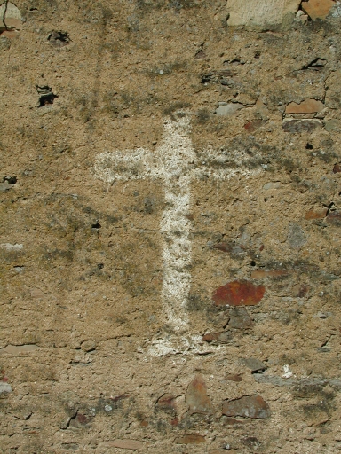 Détail du pignon est : croix peinte sur l'enduitImmatriculation