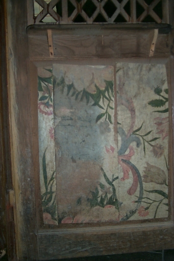 Confessionnal nord : vue générale d'un panneau ancien décoré remployéImmatriculation