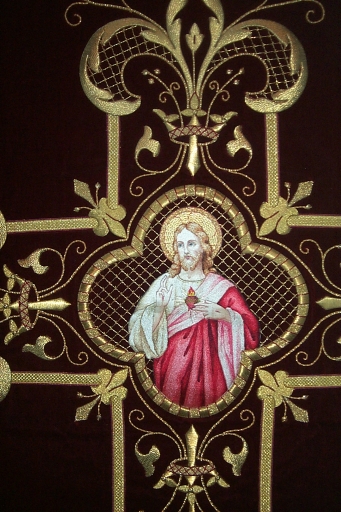 Ornement rouge 2 : chasuble, bourse du corporal, étole, voile du calice,