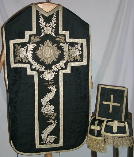 Ornement noir 3 : chasuble, bourse du corporal, étole, manipule,