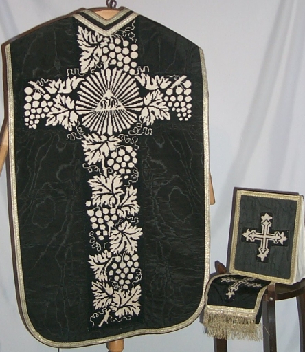 Ornement noir 4 : chasuble, bourse du corporal, étole,