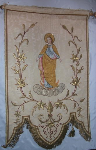 Bannière de procession : Sainte Jeanne d'Arc, Immaculée Conception,