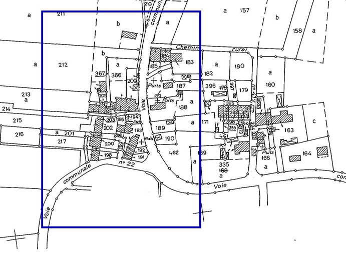 Extrait du cadastre de 1983 ; partie nord de l'écartImmatriculation