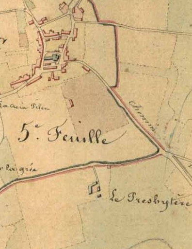Le presbytère et ses dépendances sur le tableau d'assemblage du cadastre de 1843Immatriculation
