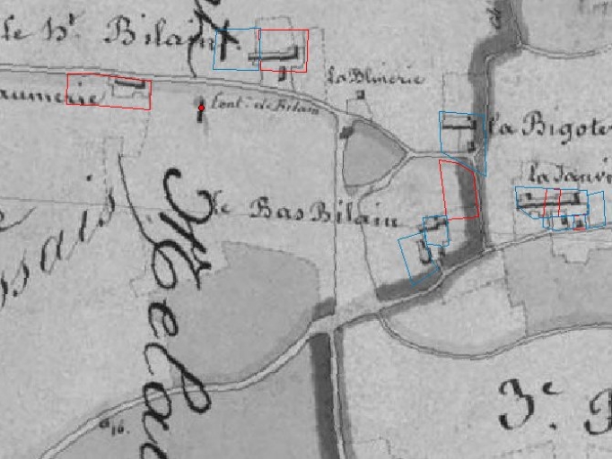 Les ouvrages recensés projetés à droite sur l'extrait du cadastre de 1847Immatriculation