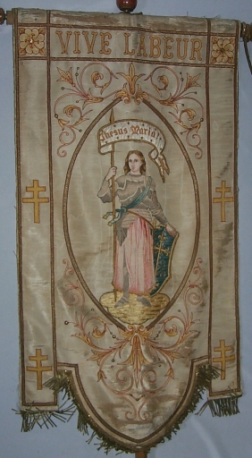 Bannière de procession : sainte Jeanne d'Arc, Immaculée Conception,