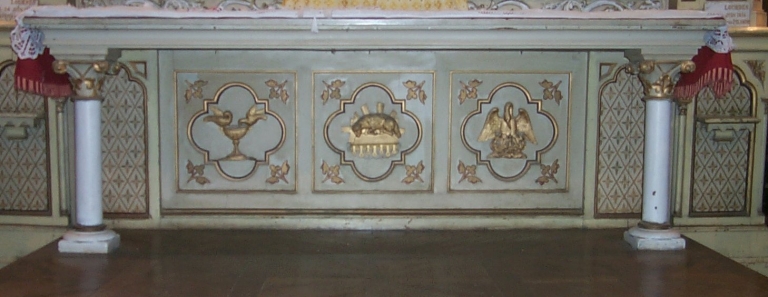 Ensemble du maître-autel : autel, tabernacle, 2 gradins d'autel, retable, exposition, 2 degrés d'autel,
