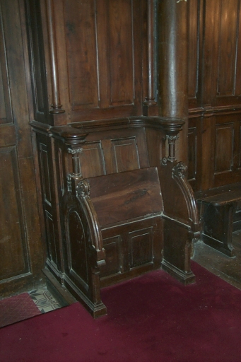 Mobilier de choeur : lambris de demi-revêtement, 4 stalles, 7 bancs,