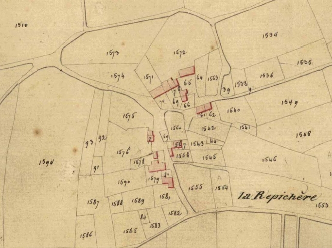 Cadastre vers 1825 ; ouvrage construit sur les parcelles 64-65Immatriculation