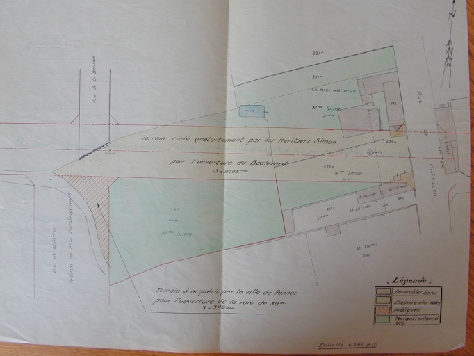 Plan parcellaire de l'ouverture du boulevard Clémenceau, 1950.Immatriculation