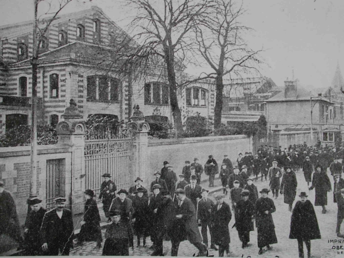 Sortie des ouvriers de l'imprimerie Oberthür, au début du siècle (A. D. Ille-et-Vilaine)Immatriculation