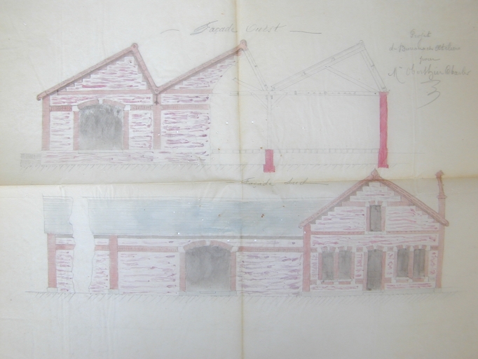 Brosserie Saint-Hélier, projet de bureaux et magasins, façades, dessin, 1900 (A. C. rennes)Immatriculation