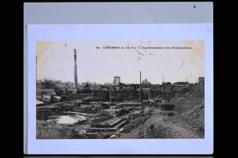 Carte postale ancienne : vue générale des ardoisières.Immatriculation
