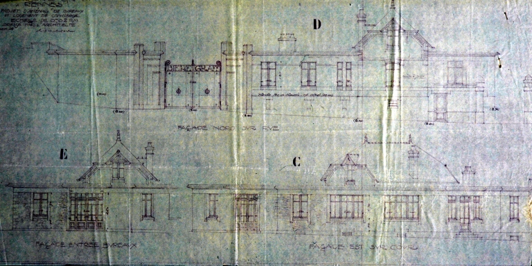 Brasserie Graff : élévations nord sur rue, est sur cour et entrée des bureaux (septembre 1928).Immatriculation