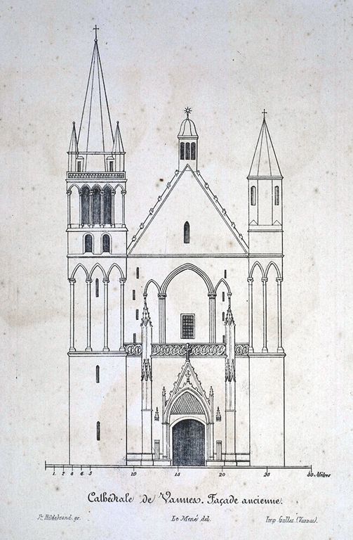 Cathédrale : élévation ouest par J.-M. Le Mené, 1867. AD Morbihan 2 Fi 323.Immatriculation