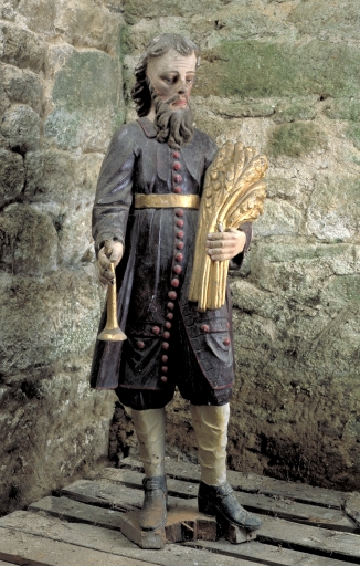 Statue (petite nature) : saint Isidore, place Ernest Lemoine (Bieuzy fusionnée en Pluméliau-Bieuzy en 2019),