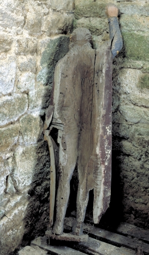 Statue (grandeur nature) : saint Michel, place Ernest Lemoine (Bieuzy fusionnée en Pluméliau-Bieuzy en 2019),