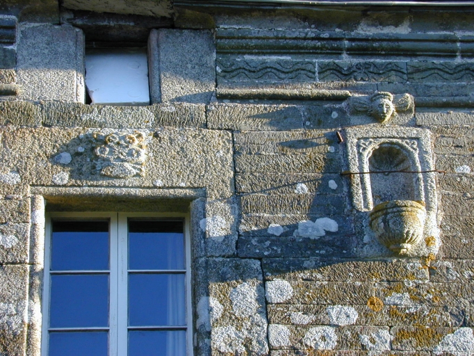 Fenêtre de l'étage et niche à Vierge.Immatriculation