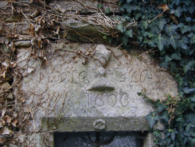 Kerdavid, maison de prêtre entièrement remaniée : fenêtre ornée d'un calice datée 1606.Immatriculation