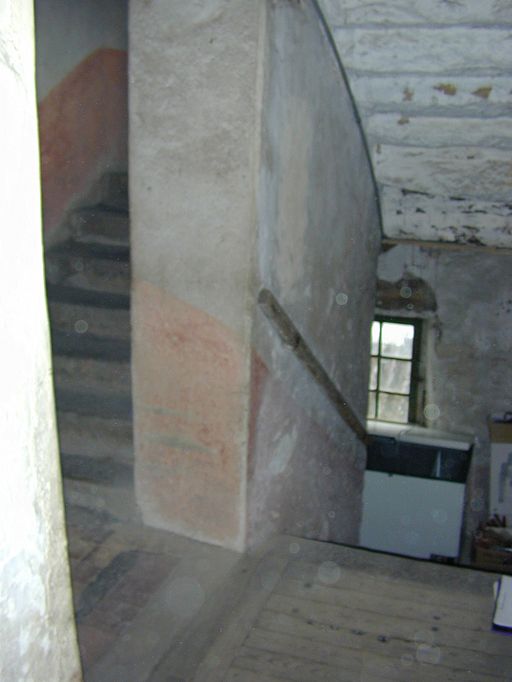 Cage d'escalier, vue prise de l'étage.Immatriculation