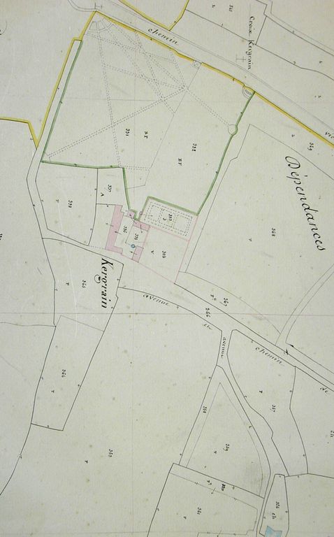 Plan cadastral 1844, section I Bondon, 2e feuille, détail Kergrain. AD Morbihan 3P 593Immatriculation