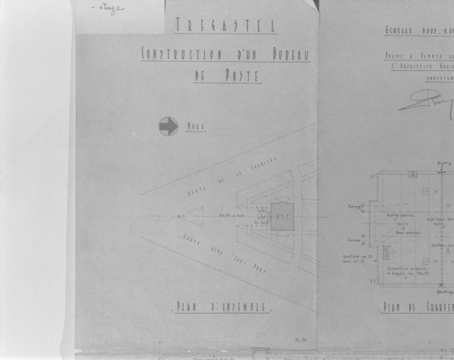 Construction d'un bureau de poste, plan d'ensemble, par Pierre-Jack Laloy, 10 octobre 1950.Immatriculation