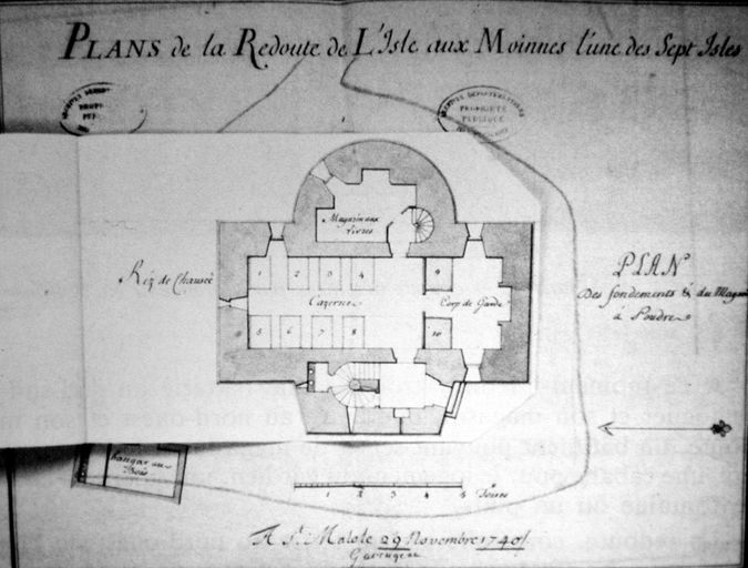 Plan de la redoute, réduit de l'île aux Moines par Garangeau daté du 29 novembre 1740Immatriculation