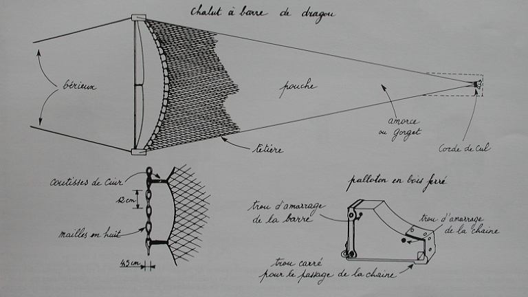 Chalut à barre (Dessin M. Duédal).Immatriculation
