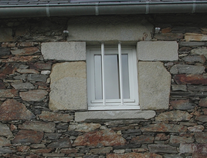 Façade antérieure. Vue détaillée des os de moutons servant à sécher filets et raies.Immatriculation