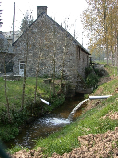 Vue générale nord-est du moulin et bief d'aval.Immatriculation