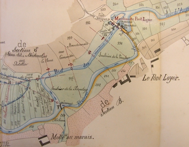 Plan de situation extrait du dossier de réglement d'eau des moulins du Pont Loyer (19 décembre 1891).Immatriculation