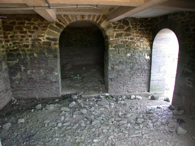 Vue intérieure de l'ancien coursier doté d'arcs en plein cintre.Immatriculation