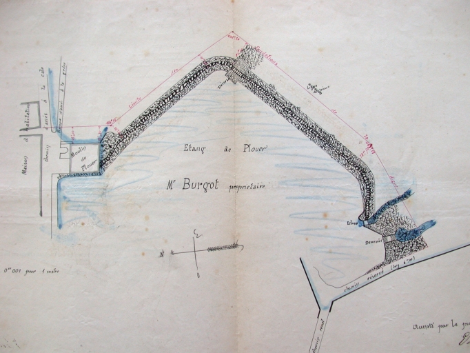 Plan de situation du moulin de Plouër et de ses ouvrages régulateurs (28 janvier 1902).Immatriculation